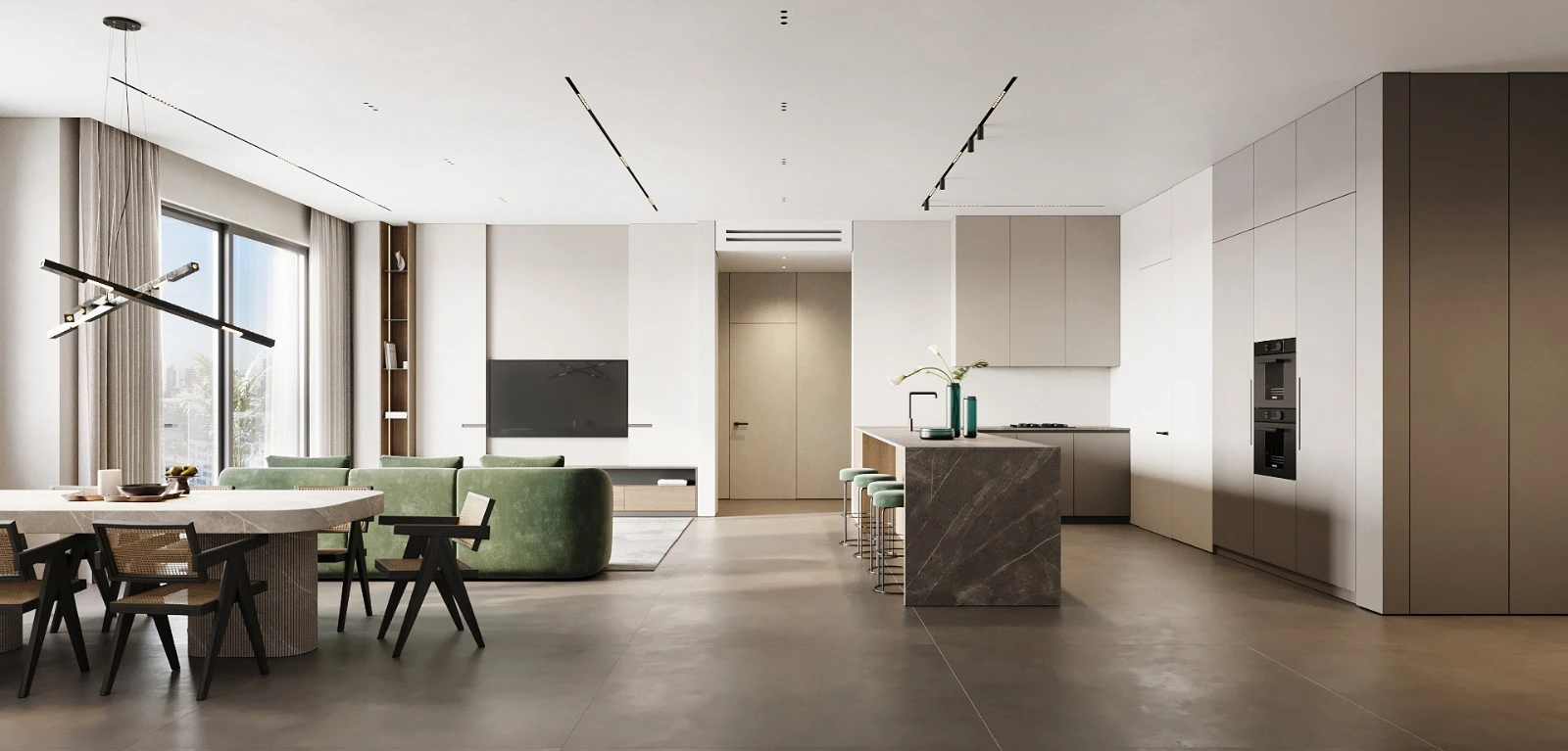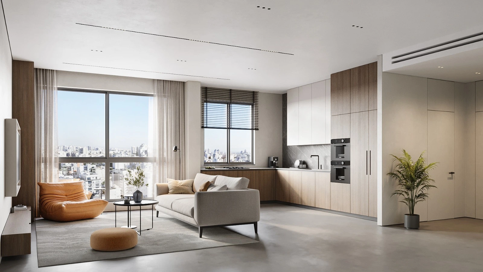 הסביבה האדריכלית יוצרת חיבור ייחודי בין עיצוב נקי ומודרני לבין שילוב גווני עץ טבעיים, המתחברים בהרמוניה למרחב ירוק ושקט. יחד הם מייצרים מתחם מגורים בעל אופי חם, יוקרתי ומזמין – מקום שמרגיש בית מהרגע הראשון.